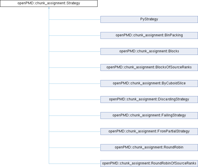 Implemented in openPMD::chunk_assignment::BinPacking, openPMD::chunk_assignment::Blocks, openPMD::chunk_assignment::BlocksOfSourceRanks, openPMD::chunk_assignment::ByCuboidSlice, openPMD::chunk_assignment::DiscardingStrategy, openPMD::chunk_assignment::FailingStrategy, openPMD::chunk_assignment::FromPartialStrategy, openPMD::chunk_assignment::RoundRobin, openPMD::chunk_assignment::RoundRobinOfSourceRanks, and PyStrategy.
